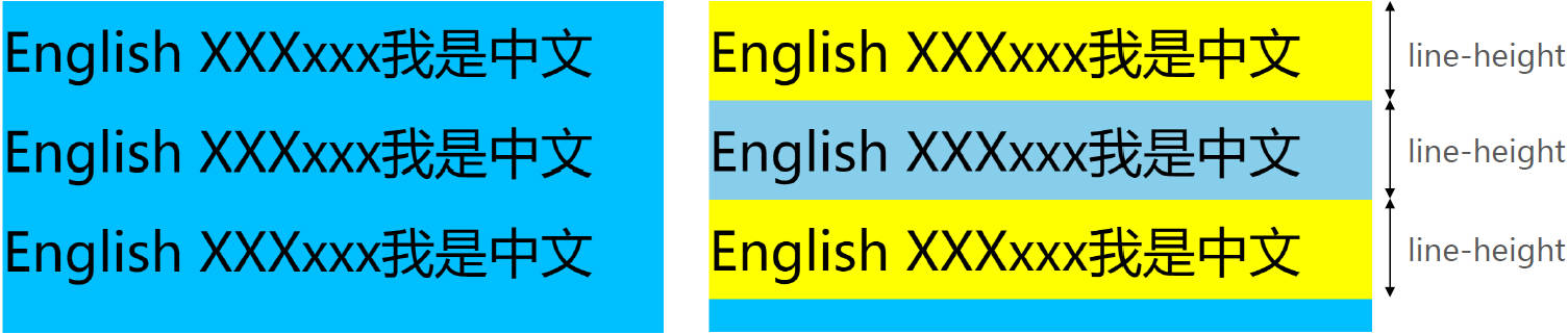 - 如果只有内联级别的元素,高度是最顶部行框的顶部到最底部行框底部的距离。