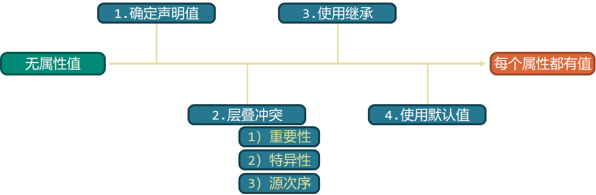 优先级:直接设置的样式 > 继承的样式 > 自带的样式