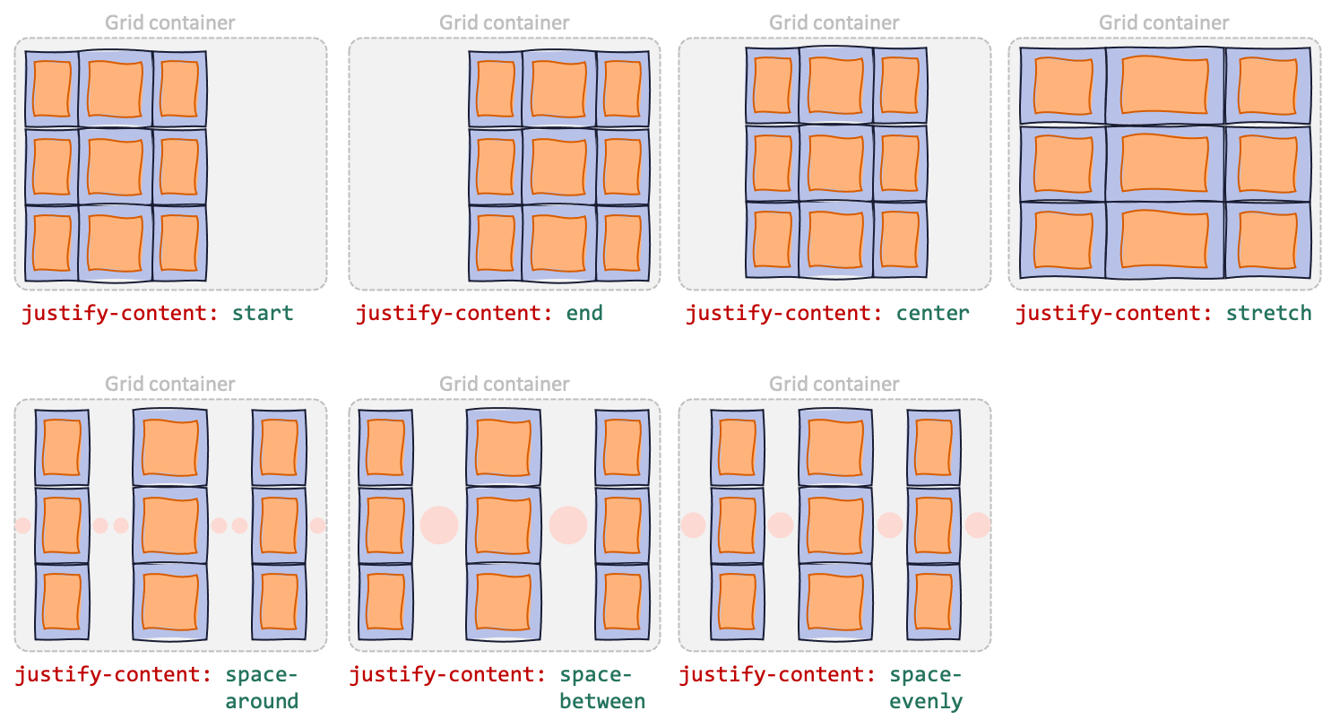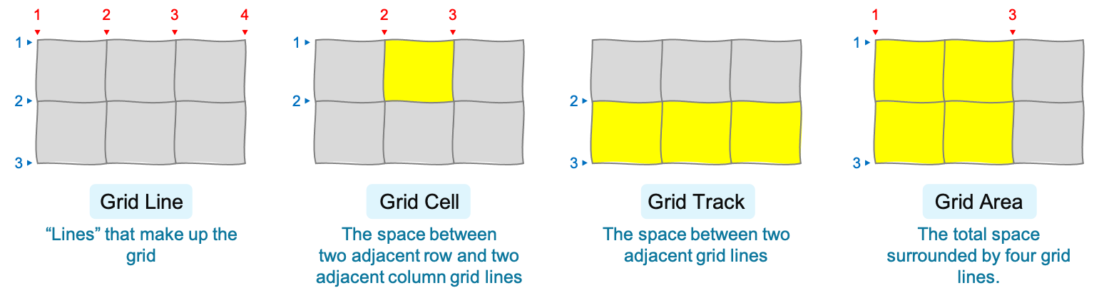 - 网格元素(display 为 grid 或 inline-grid 元素的直接子元素)。也被称为 GFC。