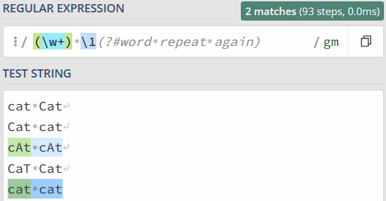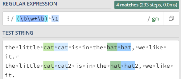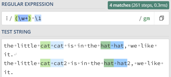 6)分组和引用:使用 () 进行分组,使用 \1、\2 等进行引用。