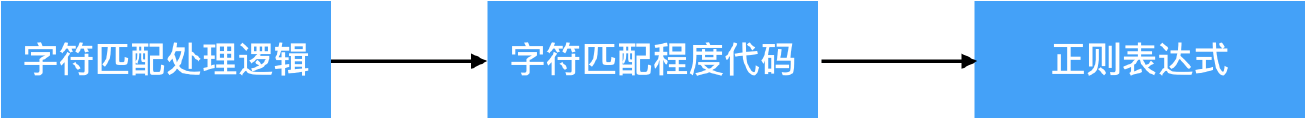 程序代码是对现实事物处理逻辑的抽象,而正则表达式,则是对复杂的字符匹配程序代码的进一步抽象;也就是说,高度简洁的正则表达式,可以认为其背后所对应的,是字符匹配程序代码,而字符匹配程序代码,背后对应的是字符匹配处理逻辑。
