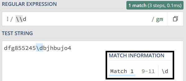 // 含义1: d 字母d 含义2: \d 数字 0~9