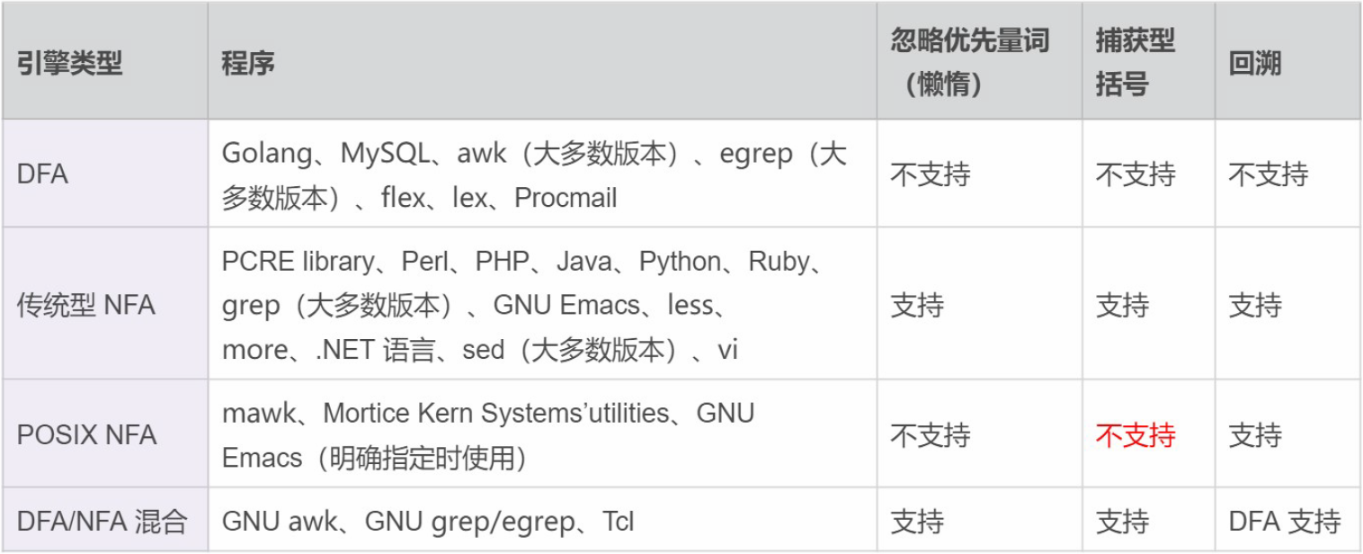 3)Perl 兼容正则表达式(PCRE):这是 Perl 语言中使用的正则表达式标准,提供了许多强大的特性,如预查(lookahead)、后顾(lookbehind)、非贪婪匹配和反向引用等。PCRE 在许多现代编程语言(如 PHP、Python 和 JavaScript)中被广泛使用。