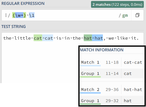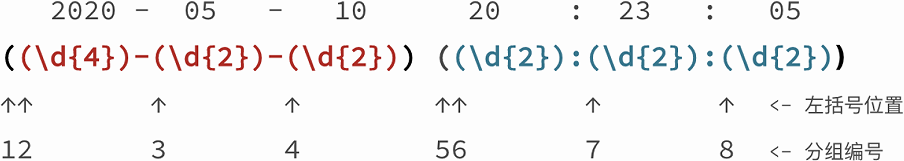 对上述例子稍作修改,在 pattern 中加上两对小括号,如下: