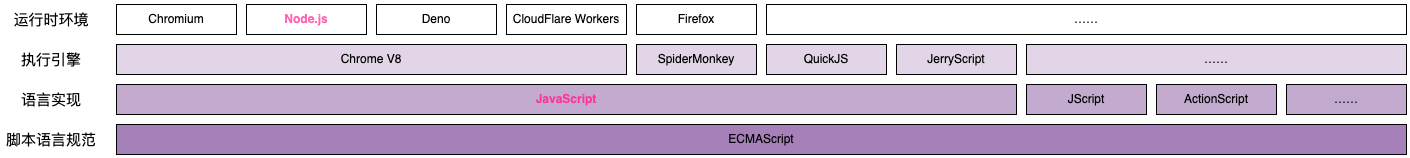 - Node.js 也不是一个 JavaScript 框架或库。不同于 Vue.js、React.js、Angular、JQuery 等。
