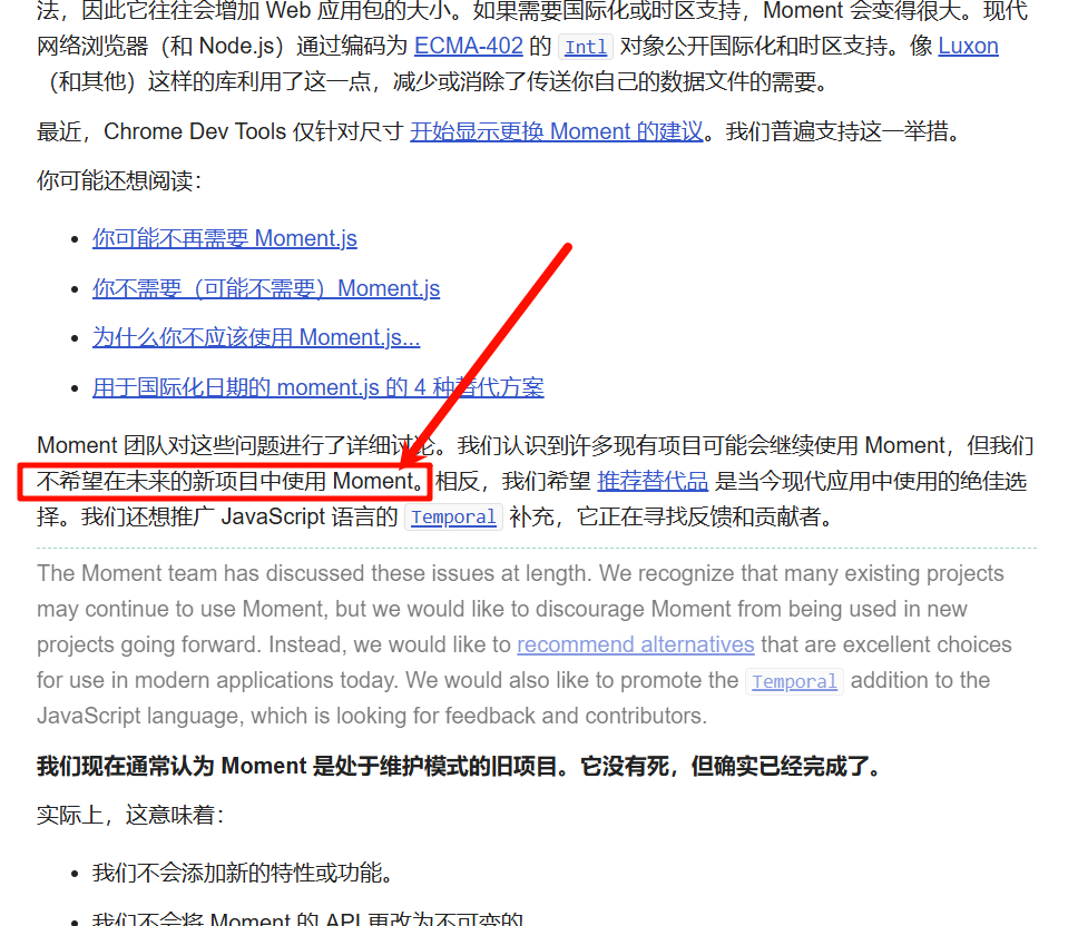 在以前可能大多数使用的是 Moment.js 库,但目前官方也推荐最好不要在新项目中使用。进入维护模式,不在添加新功能。