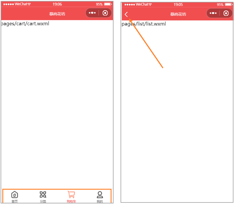 点击左上角,返回上一个页面,会销毁当前页面 (被打开页面) 。