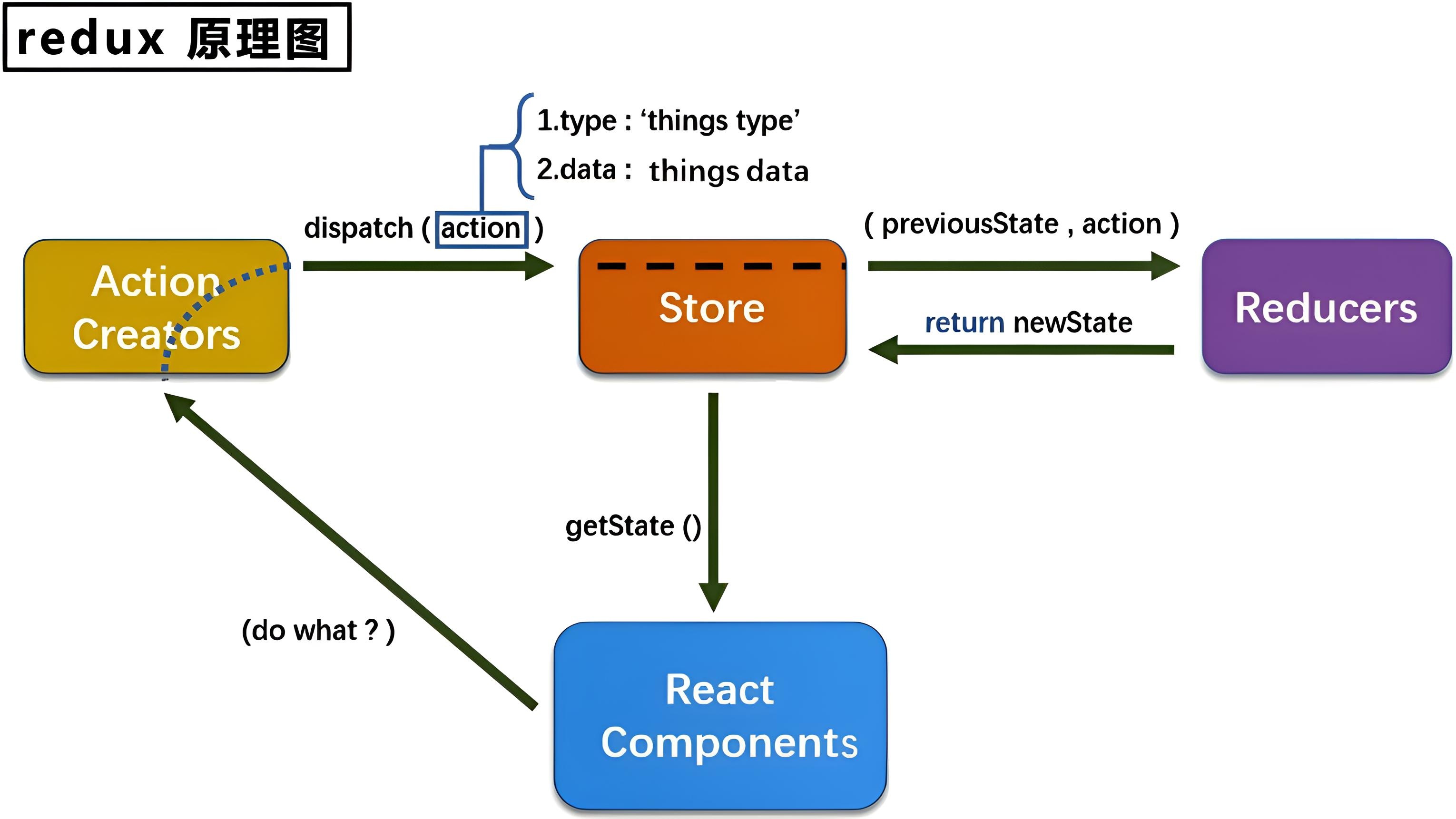 Redux:一个应用状态管理 js 库,可以应用于其他框架构建的前端应用,与 React 没有半毛钱关系。