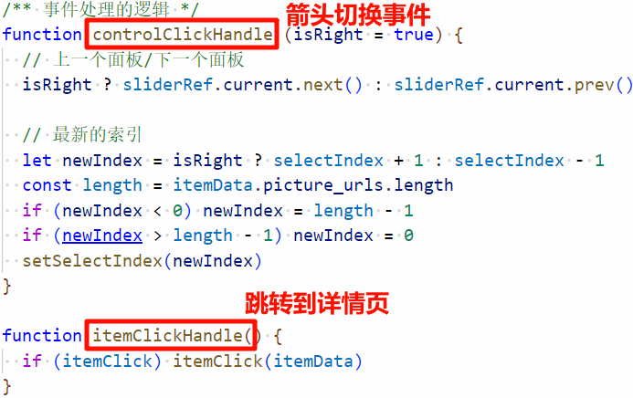 2)父组件通过 props 传过来图片 URL 地址的数组。左右箭头就是控制图片 URL 地址的数组索引。