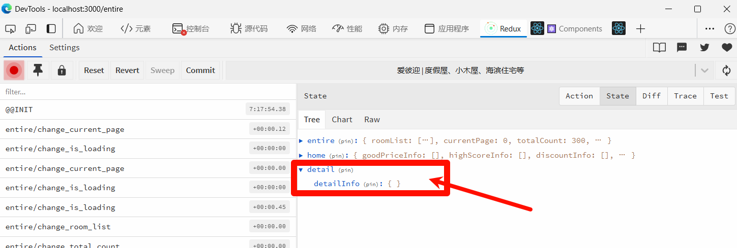 </div>写完一个功能,就测试下。看到 detail store 成功存入了 detailInfo 信息。