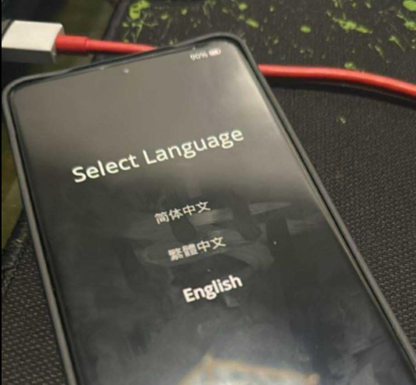 4)出现提示时,选择“English”作为手机语言,之后不要按任何按钮