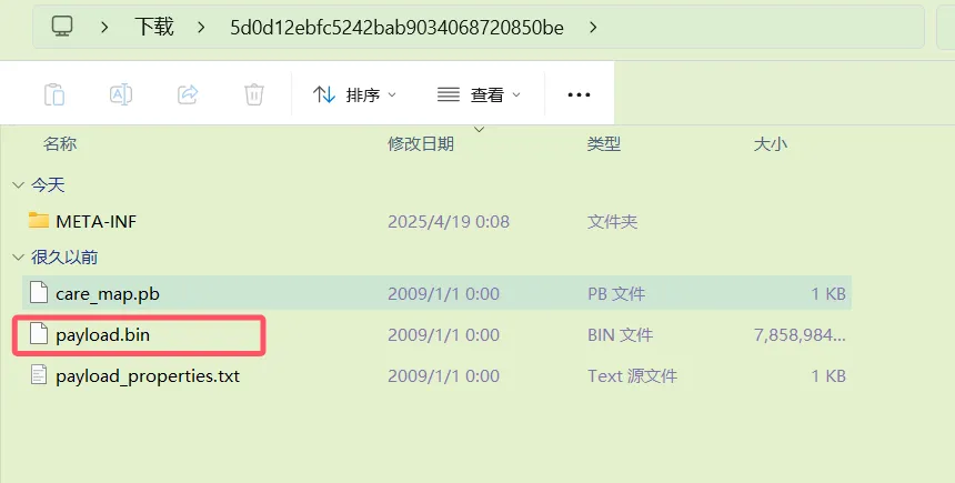 只需其中的 Payload.bin 文件,其他文件可忽略。