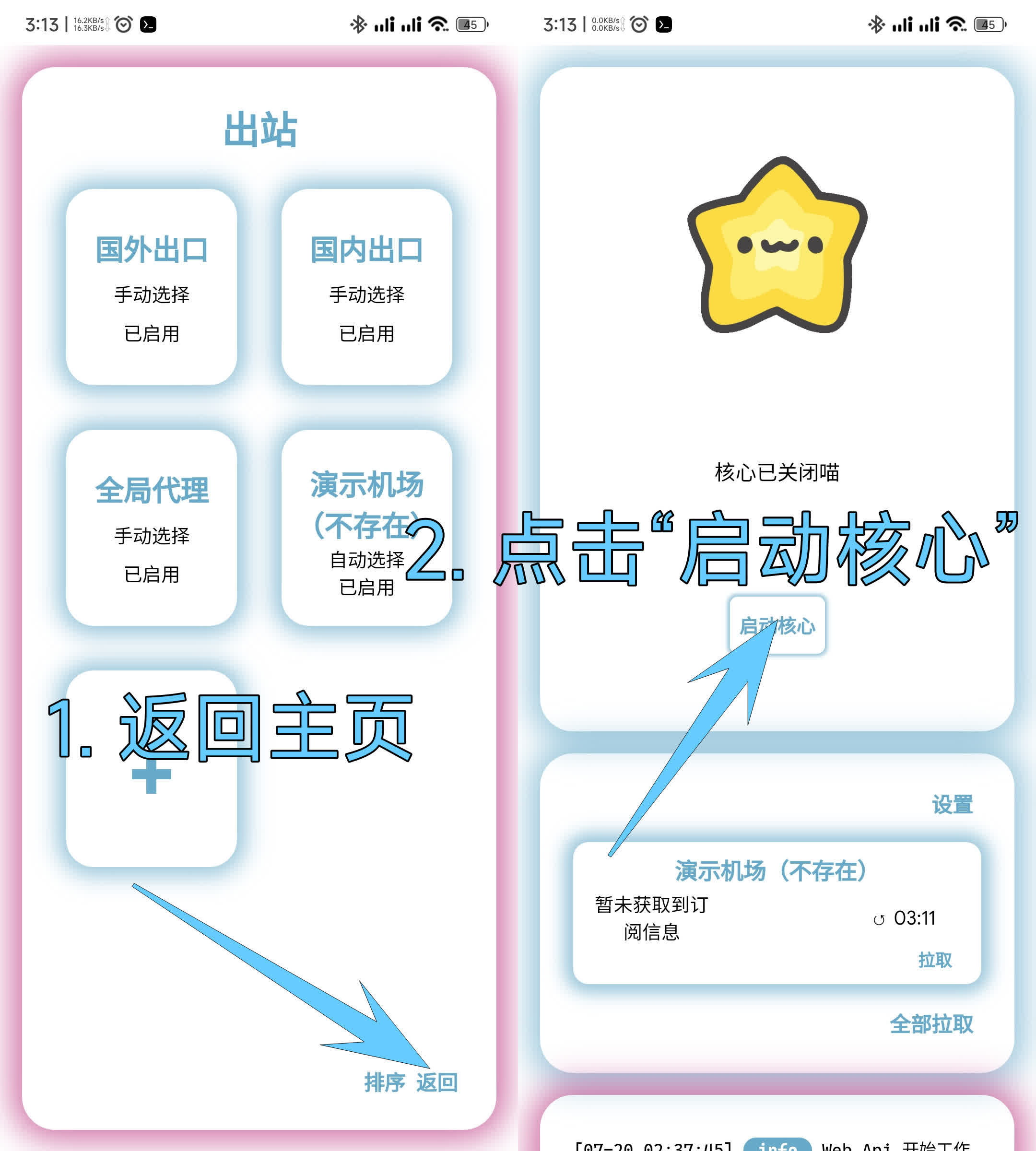 | 启动核心 | 启动 sing-box 核心(开启代理) |