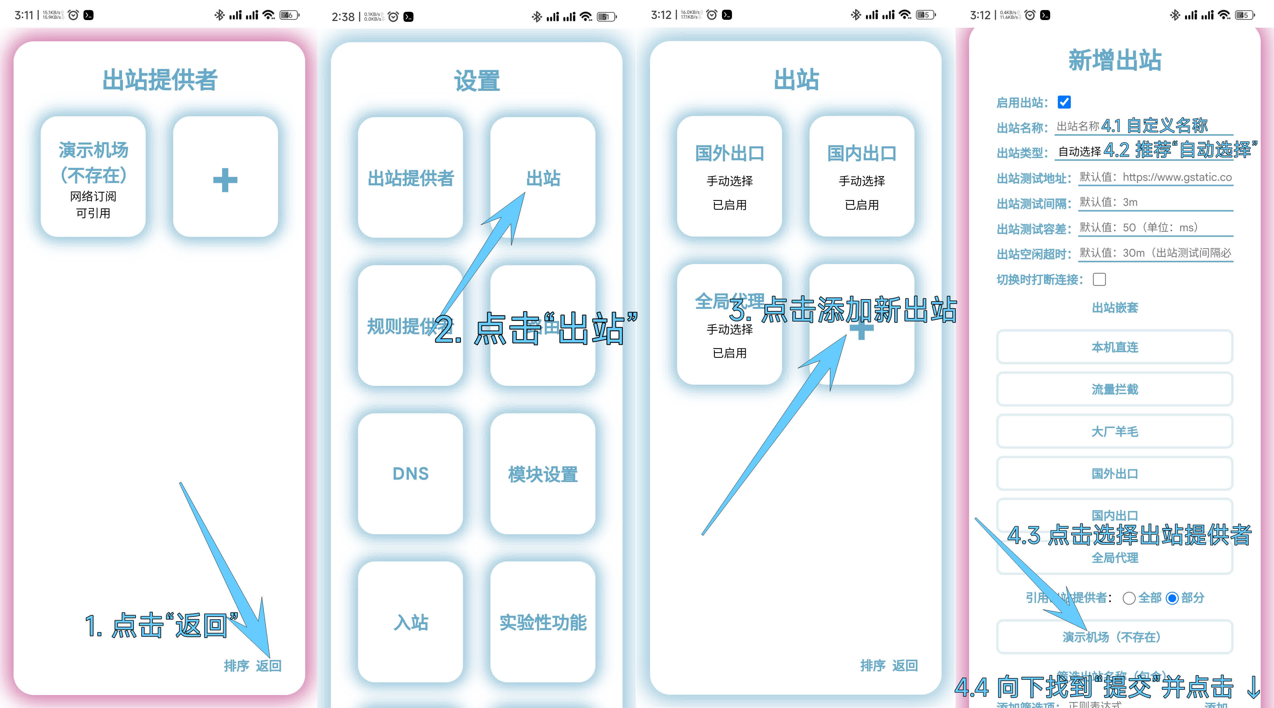 | 出站提供者 | (机场)网络订阅和本地(节点)文件 |