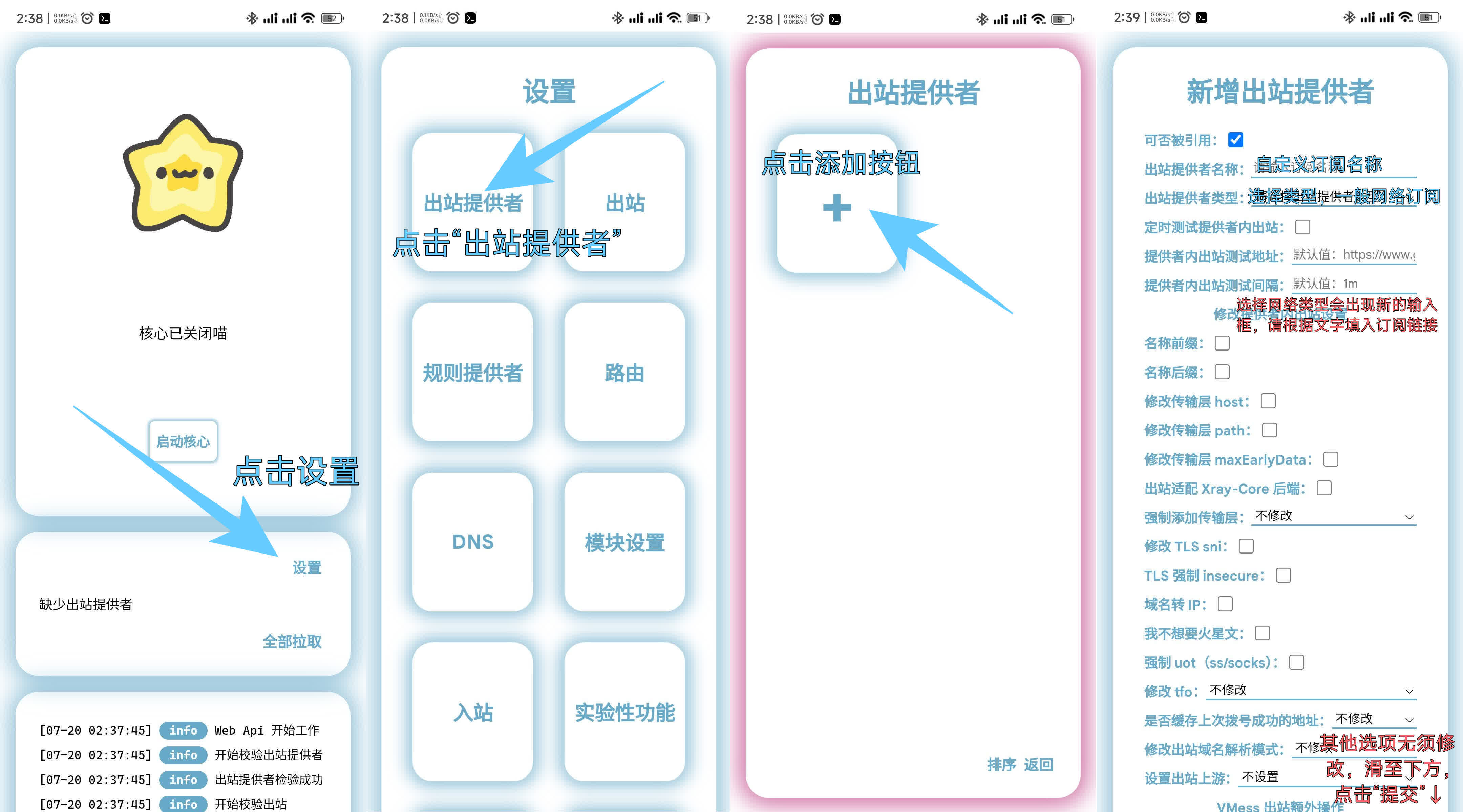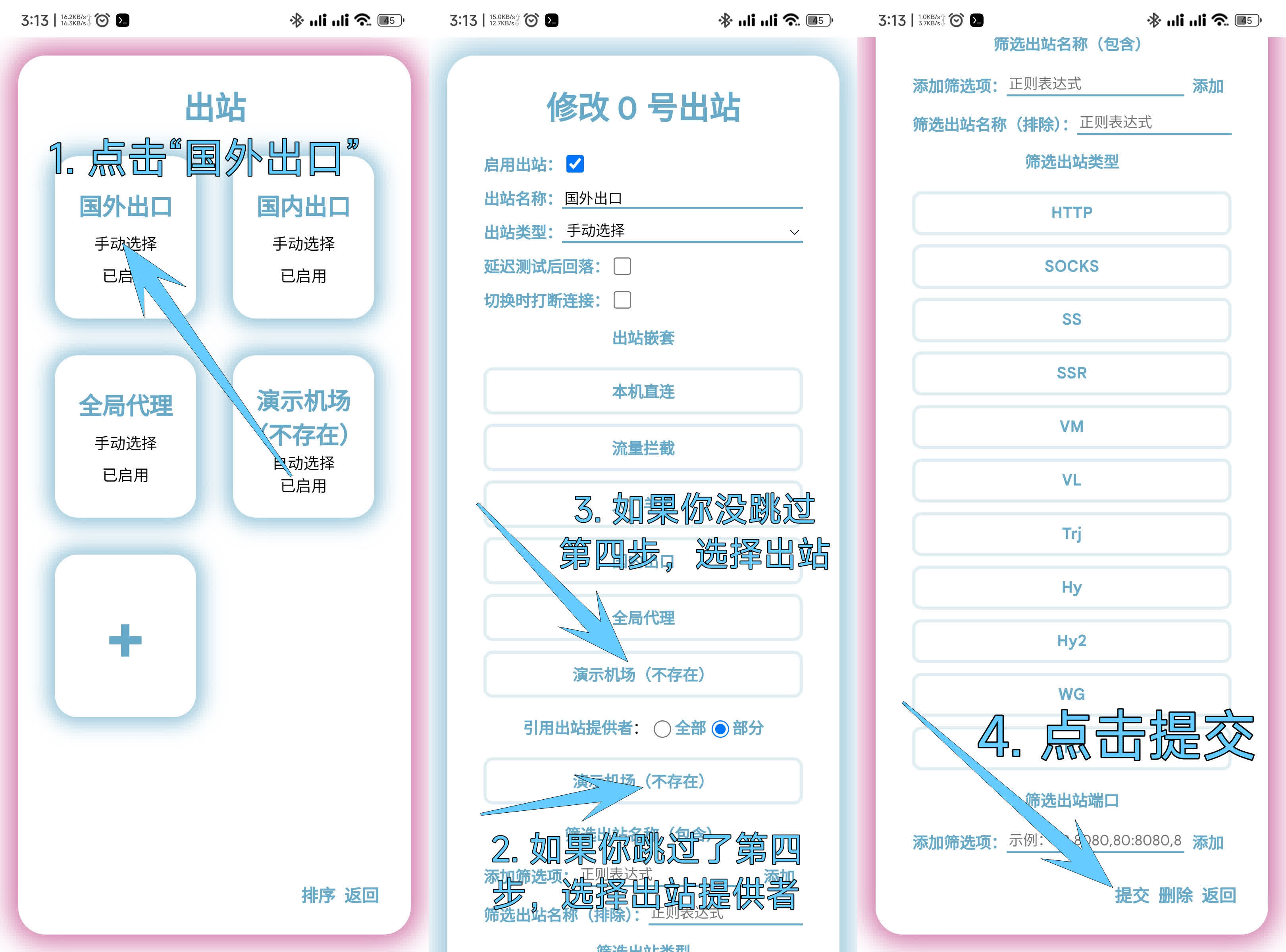 如果你跳过第三步,在【引用出站提供者】下面选择你的机场订阅。