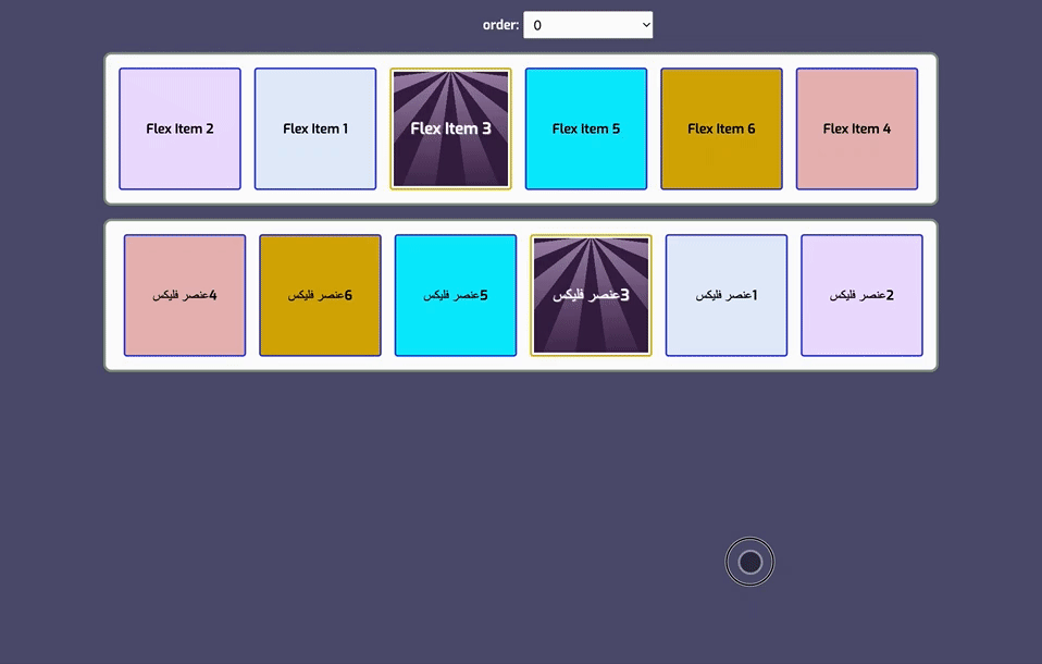在 Flexbox 布局中,在 Flex 项目上使用 order 属性可以和在 Flex 容器上使用 flex-direction 的 row-reverse (或 column-reverse )等同的效果: