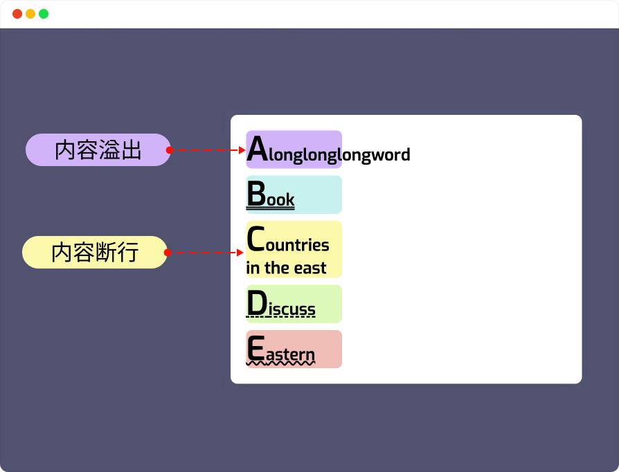 你可能会想到,使用上面代码 ① 让长词断行显示: