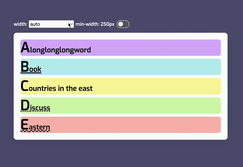 很多时候,Web 开发者并不知道容器的内容是什么,所占的宽度是多少,就会造成上图的现象。哪怕是使用了 min-content 、max-content 和 fit-content 也会面临类似现象 。