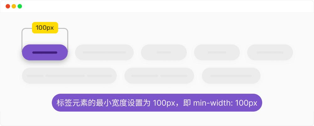 在构建这样的标签列表时,建议限制一个标签的最小宽度(即显式设置 min-width 属性的值),这样就可以保证标签列表项内容很短(少)时,它的外观不会受到影响:
