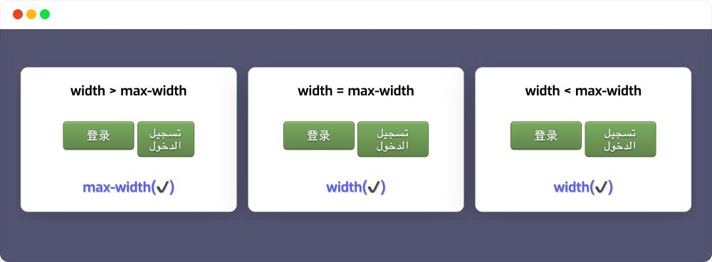 当你从中文切换到阿位伯文(或英文切换到阿位伯文)时,文本内容的所占宽度并不一致。如果未显式给容器设置 width 或 min-width 属性的值,就会造成按钮大小不一致,这也有可能会影响 Web 布局或整体的视觉效果。如果显式加上 width 就有可能会在某个语种下造成内容溢出或断行,那么这个时候显式设置一个 min-width 就会有一个较好的视觉效果: