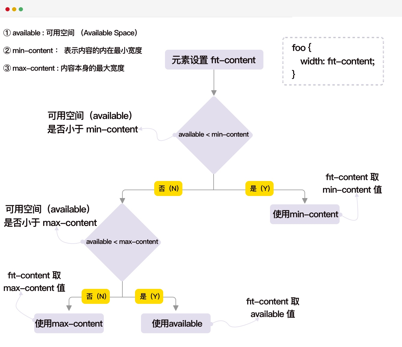 fit-content和fit-content(<length-percentage>)所描述的不是同一个东西,它们的区别将放到 CSS Grid 相关的课程中介绍 。