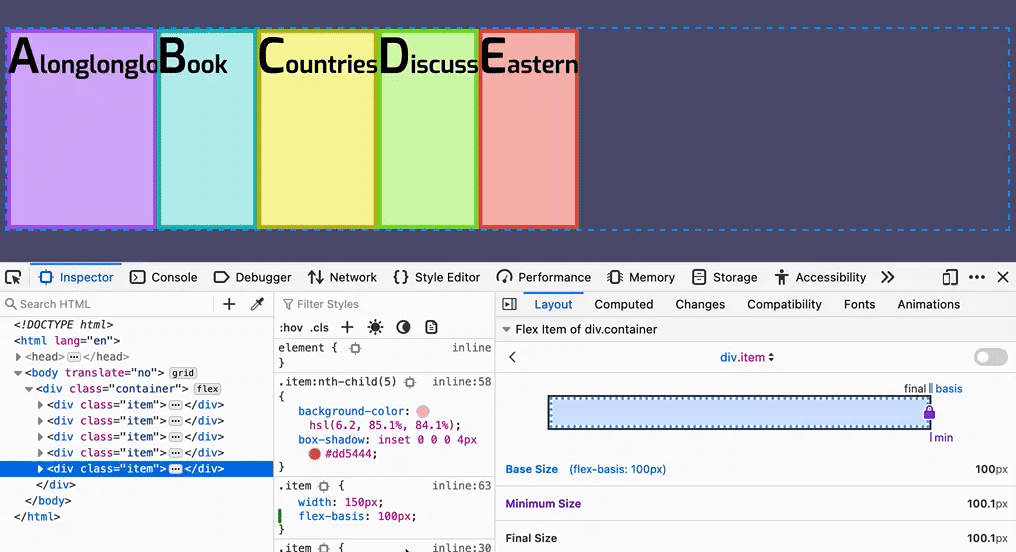 另外一点,Flexbox 布局中的 flex-basis 值,浏览器最终计算的 flex-basis 最终值也会像 width 属性一样,受 min-width (或 min-inline-size)、min-height (或 min-block-size)、max-width (或 max-inline-size)和 max-height (或 max-block-size)值的限制。