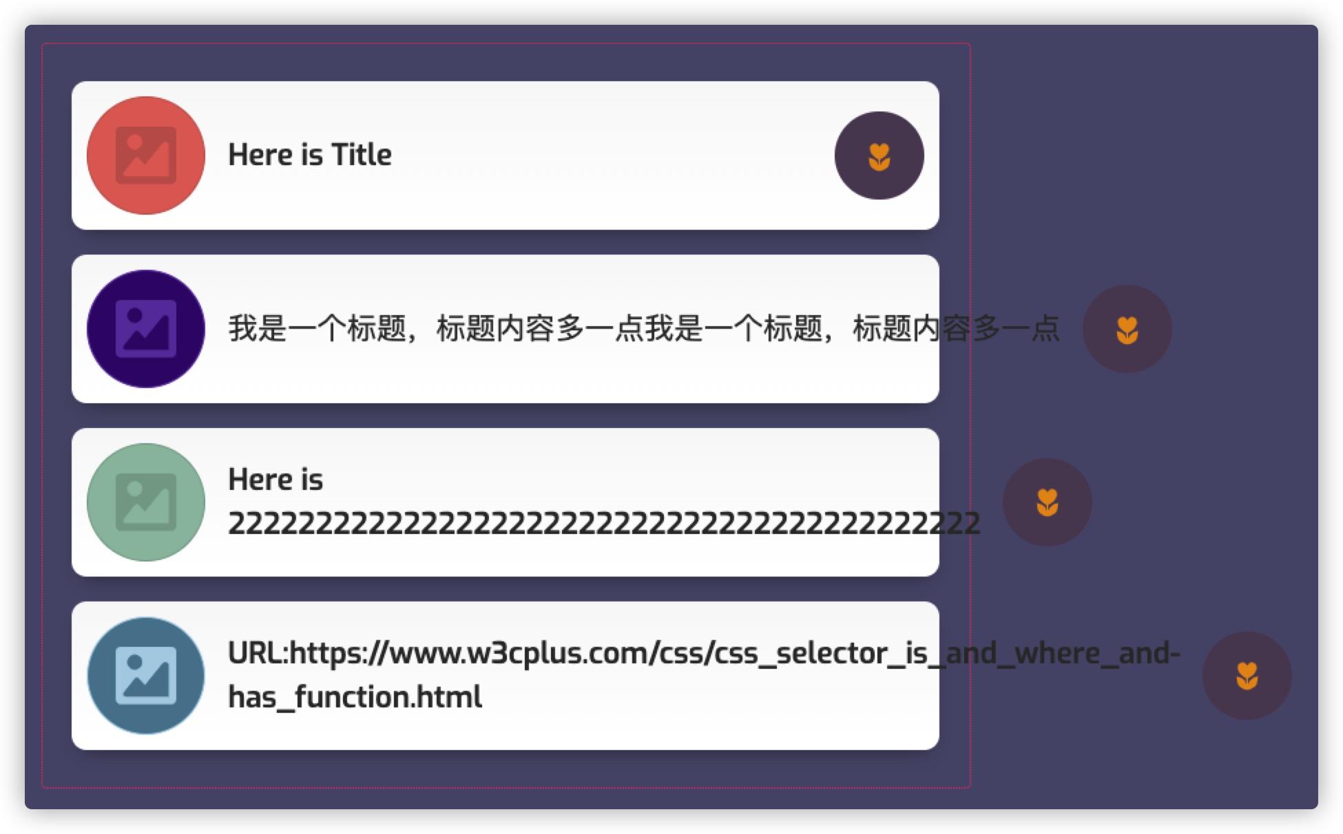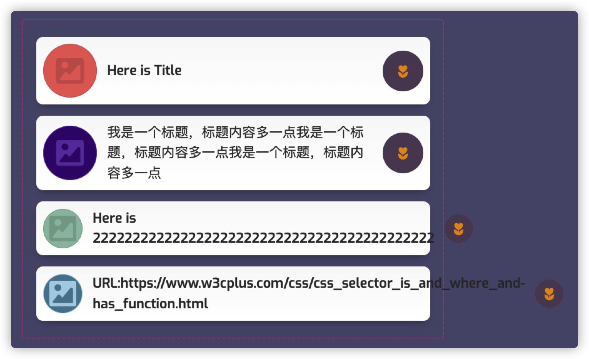 }你会发现,卡片右侧的 Icon 还是被长内容挤出容器(溢出):