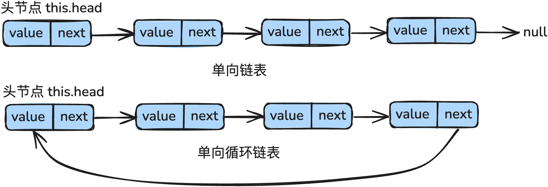 this.tail.next = this.head; // 更新尾节点的next指向新的头节点,保持循环结构