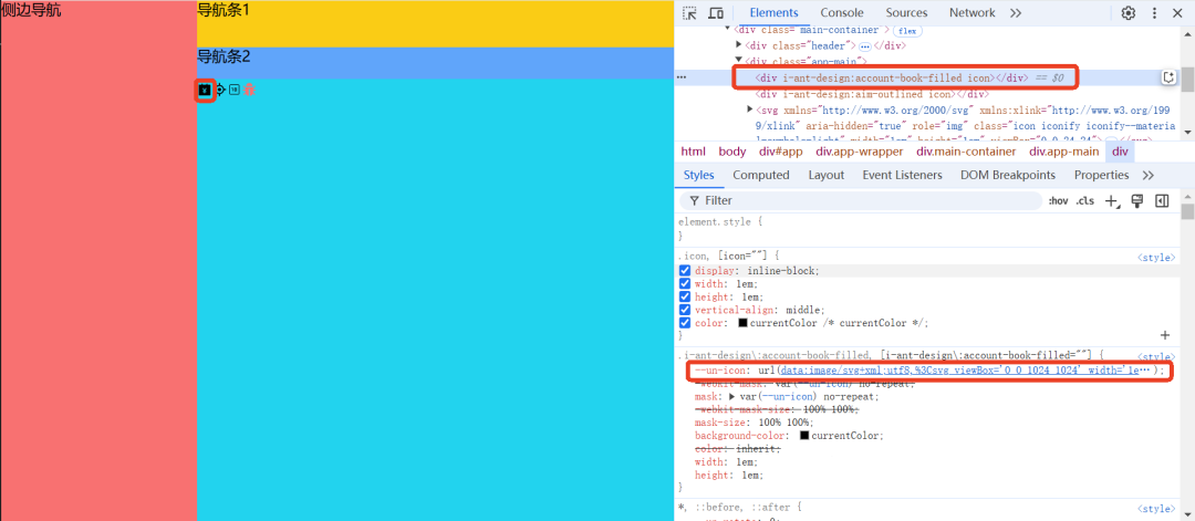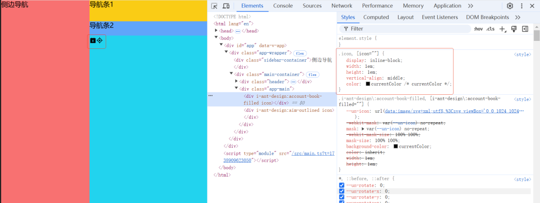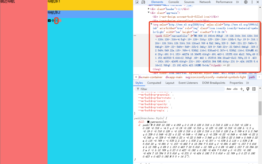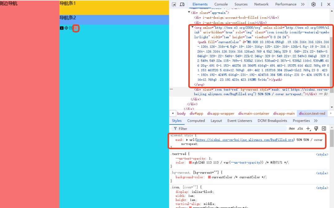 </script>页面效果如下,控制台可以看到渲染方式从之前的base64变成了svg形式。与 Base64 图标相比,svg 图标优势突出。视觉上,svg 基于矢量可无损缩放,在各分辨率设备都清晰,还能实现多色与复杂图形;Base64 缩放易失真。文件性能方面,svg 文件小,可被浏览器有效缓存,减少加载时间;Base64 编码后体积增加,缓存不便。开发维护上,svg 是文本格式,可直接编辑,便于复用和扩展;Base64 修改繁琐。另外,svg 中的文本利于 SEO,Base64 则无此优势。