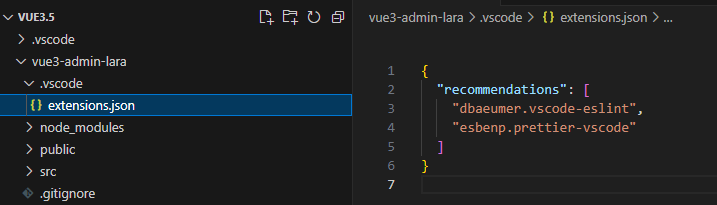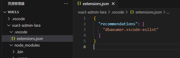 点击后,会在项目文件夹 .vscode 下的 extensions.json 中添加配置,没有的话手动添加一下。