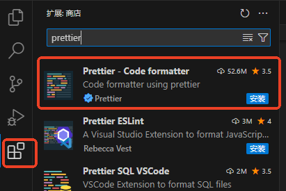 ]如下图,在 vscode 中搜索 Prettier 插件,安装 Prettier 插件。