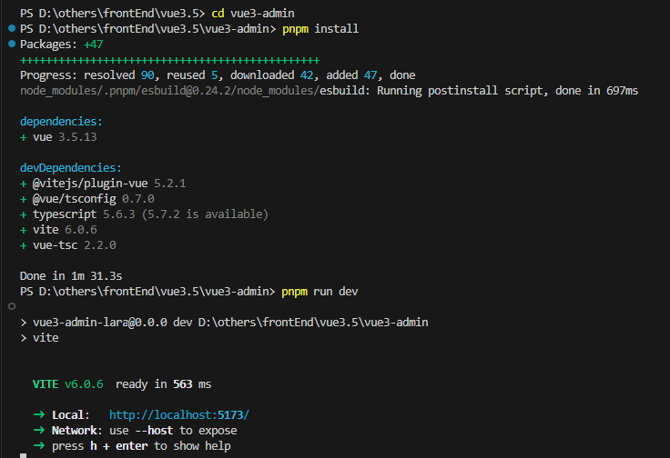 npm install pnpm -g2)创建项目并启动